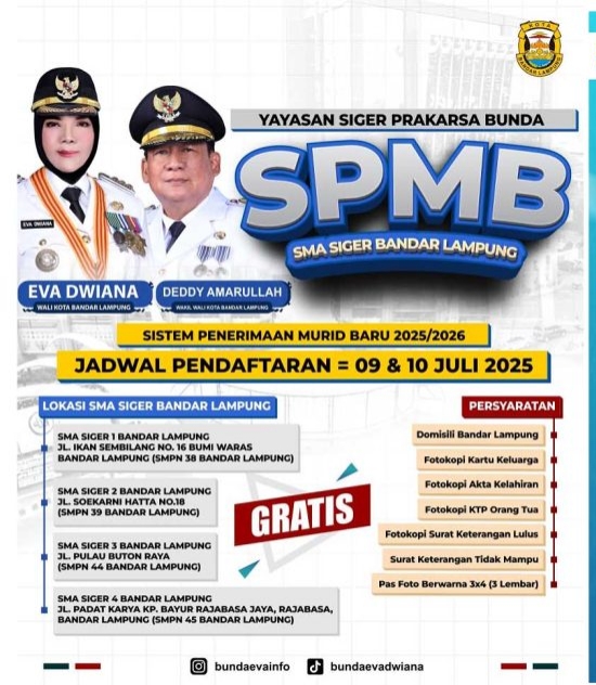 “Informasinya, pembiayaan penuh SMA Siger akan masuk APBD 2026. Fokusnya pembiayaan penuh dari APBD, bukan dari pungutan siswa, seperti yang ditegaskan wali kota,” ujarnya.